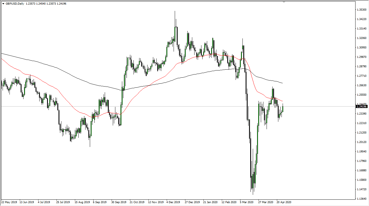 To the downside I anticipate that the 1.2250 level would be an area of support, and if we were to break down below there it is likely that the GBP/USD pair will go looking towards 1.20 handle. I do not think that is going to be easy, but it is very possible over the longer term. After all, the United Kingdom is going to be much slower to open up than the United States, so that in and of itself should continue to throw money out of America. Beyond that, you also have the US Treasury market that continues to be a place where safety trading happens, and as long as there are a lot of concerns out there, it makes quite a bit of sense that more money flows into that market, which of course demands US dollars. Beyond that, when I look at European currencies on the whole, they are being shunned from a longer-term perspective, and needless to say Great Britain is highly exposed to Europe. Fading rallies continues to be the way I play this market.