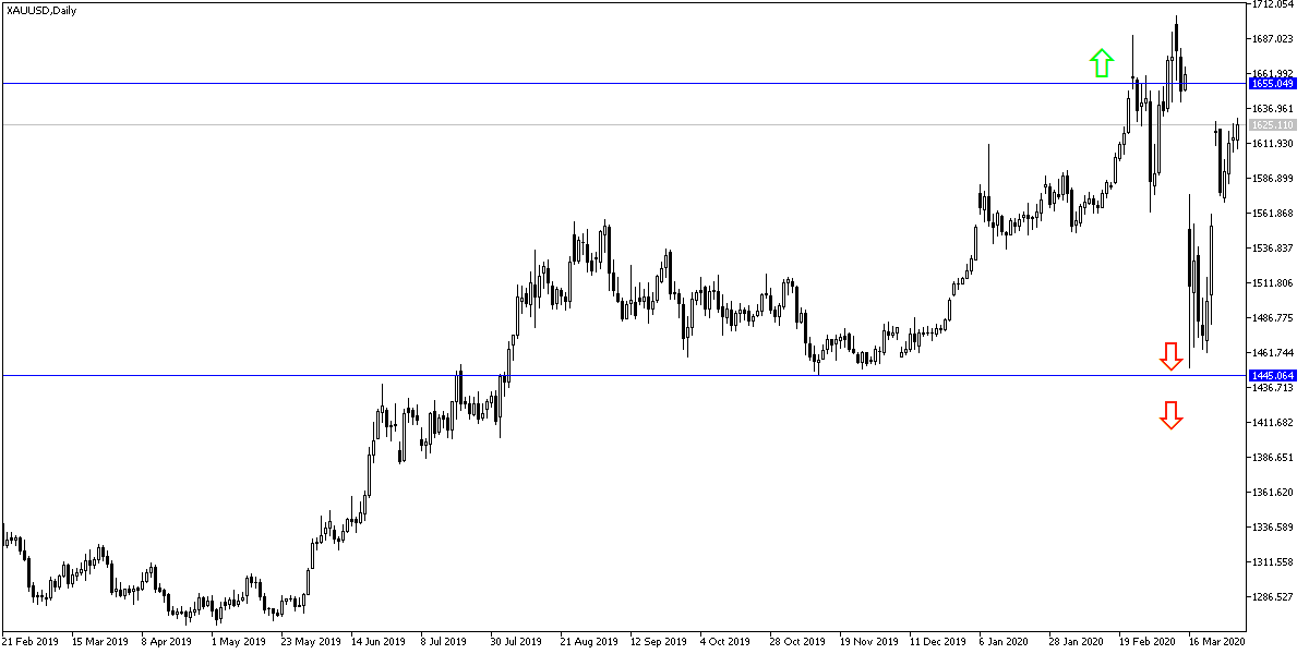 Gold prices benefited a lot from the American labor market disastrous results, which were announced at the end of last week’s trading, which contributed to pushing gold prices towards the $1626 resistance, and settling around the $1629 level at the beginning of this week’s trading. Bulls still have the opportunity to push prices to stronger levels, but there are fears of a new liquidity crisis with the continued rapid spread of the Corona epidemic, that has hit the world’s economies more strongly, setting the stage for an imminent global economic recession. The US dollar has become a favorite haven for investors more than gold.