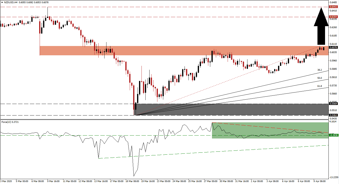 Economic data will be closely monitored once the peak of the pandemic is confirmed. Modifications to the global supply chain are guaranteed to be implemented, creating significant changes across industries. The costs of economic stimulus packages will be priced into markets, creating a bullish bias for the NZD/USD. A breakout above its short-term resistance zone located between 0.6006 and 0.6090 is favored to accelerate price action into its long-term resistance zone between 0.6354 and 0.6443.