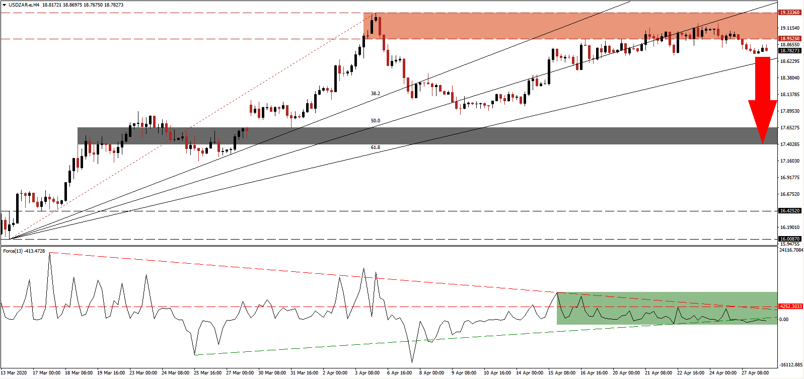 South African finance minister Mboweni outlined one possible labor market reform for the post-Covid-19 economy, targeting restaurants. His proposal calls for a higher proportion of South African employees than non-South African to be approved for reopening. He notes after his return from exile in 1990, eight out of ten were South African. It compares with almost 100% of today’s restaurant business hiring non-South Africans. Due to the coronavirus, the government is forced to address permanent positive adjustments, which extend to the tax code. Therefore, the long-term prospects for the economy are bright if proper steps are implemented. The USD/ZAR completed a breakdown below its resistance zone, where renewed selling pressure is expanding.