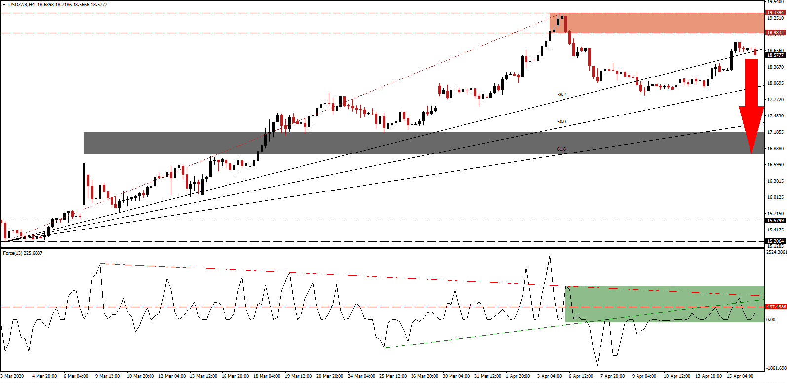 US economic data continues to clock in well below economists predictions, suggesting financial markets are mispriced, driven by hopes for a swift reversal of the deep recession. Many governments were quick to increase debt and roll-out economic aid packages far more massive than during the 2008 global financial crisis. The failure to accept the probability of long-term adjustments to existing economic operating models and the global supply chain, represents the most significant risk moving forward. Bearish pressures on the USD/ZAR rose after this currency pair contracted below its ascending 38.2 Fibonacci Retracement Fan Support Level.
