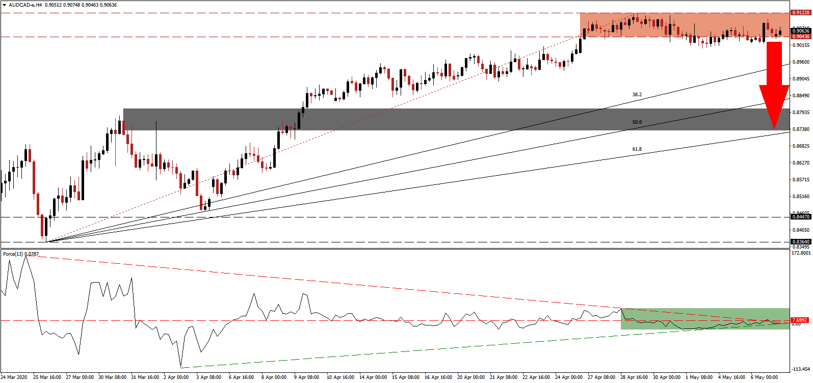 A report by the Australia-China Relations Institute at the University of Technology Sydney cautioned against the decoupling of the trading partners. It highlighted the severe negative impact the Australian economy will face, especially the commodity and educational sectors. Canada will become a primary beneficiary of the potential commodity export vacuum. Until more clarity emerges how Canberra will proceed, the AUD/CAD carries a distinct bearish fundamental driver. Price action is anticipated to correct below its resistance zone located between 0.9043 and 0.9122, as identified by the red rectangle.