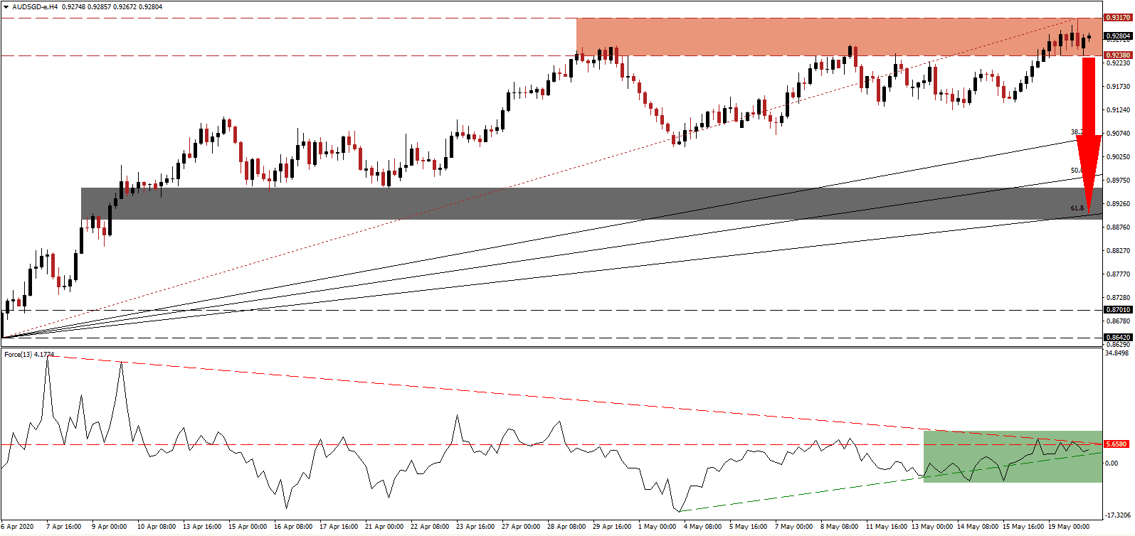 In case the Force Index accelerates above its descending resistance level, the AUD/SGD may attempt a breakout. Given the uncertain short-term outlook over Australian relations with its primary trading partner, Forex traders are recommended to consider any advance as a secondary short-selling opportunity. The upside is limited to the next resistance zone, which awaits price action between 0.9430 and 0.9455.