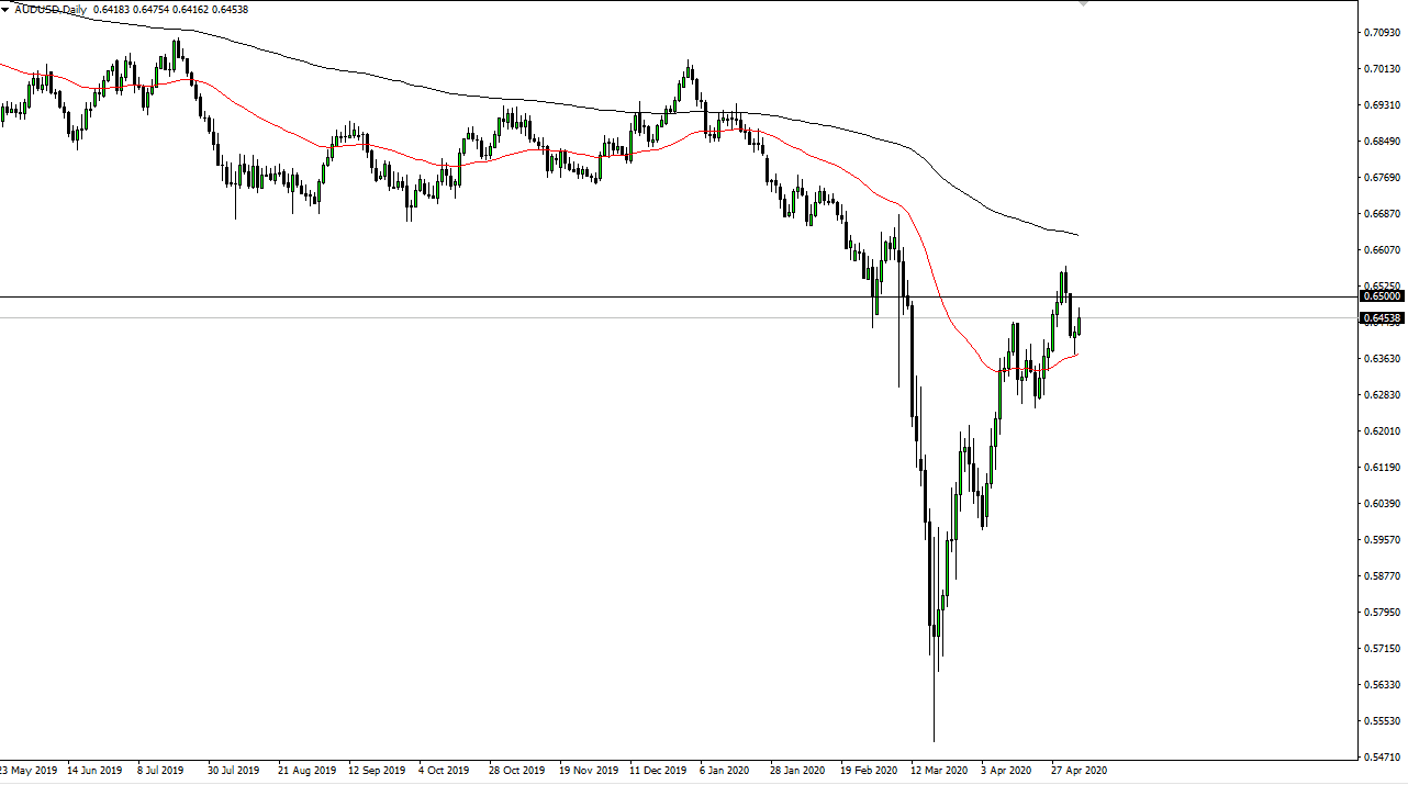 The Australian dollar rallied a bit during the trading session on Tuesday, reaching towards the 0.65 level above. That is a major resistance barrier, so I do think it is only a matter of time before the sellers come in and start pushing this market lower. Ultimately, the market will more than likely continue to pay attention to risk appetite around the world, which seems to be relatively strong moment, but longer-term certainly does not look to be a good bet. After all, the Australian dollar is highly levered to the global growth situation, and as a result it is worth paying attention to the lack of demand that will continue to be a major problem.