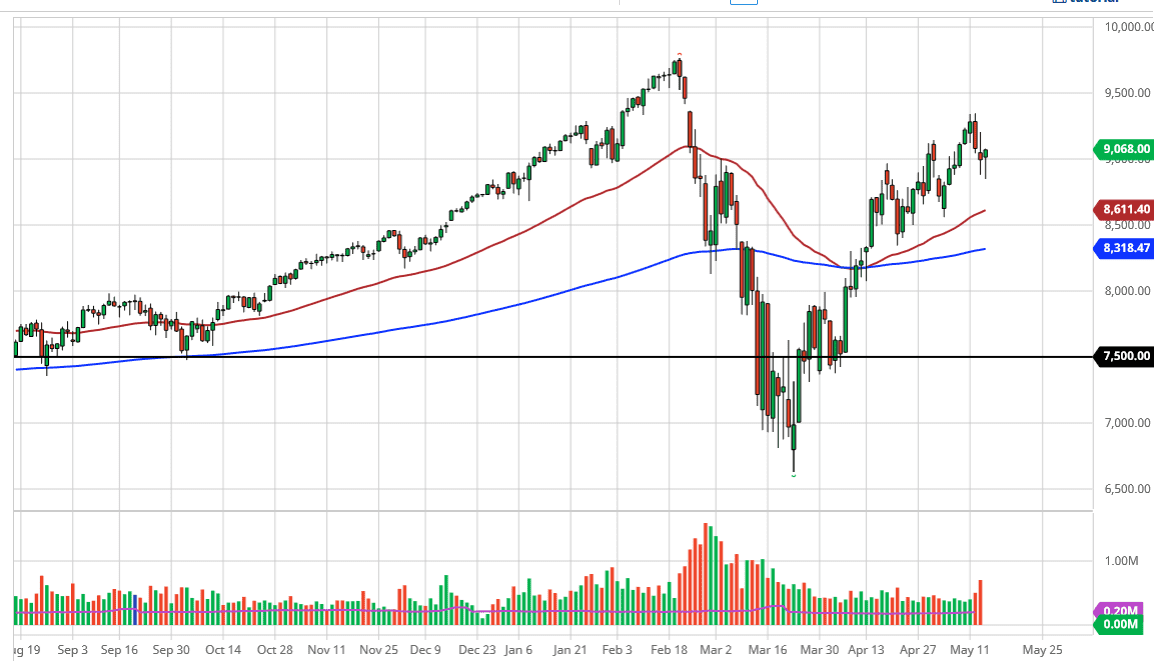 The NASDAQ 100 has pulled back a bit during the trading session on Thursday but shown an extreme amount of resilience to break above the 9000 handle. At this point in time, the fact that the market has formed a bit of a hammer for the trading session right at the 9000 level tells me that there are still buyers underneath willing to step in and pick up the NASDAQ 100 when they can. Furthermore, you should keep in mind that the same stock that everybody else plows into on Wall Street are the main components of this index, meaning Alphabet, Netflix, Microsoft, and Facebook. At this point, the market is likely to see those stock still bought into so I believe that when it comes to the two major indices that I follow here at Daily Forex, the NASDAQ 100 will be a major leader.