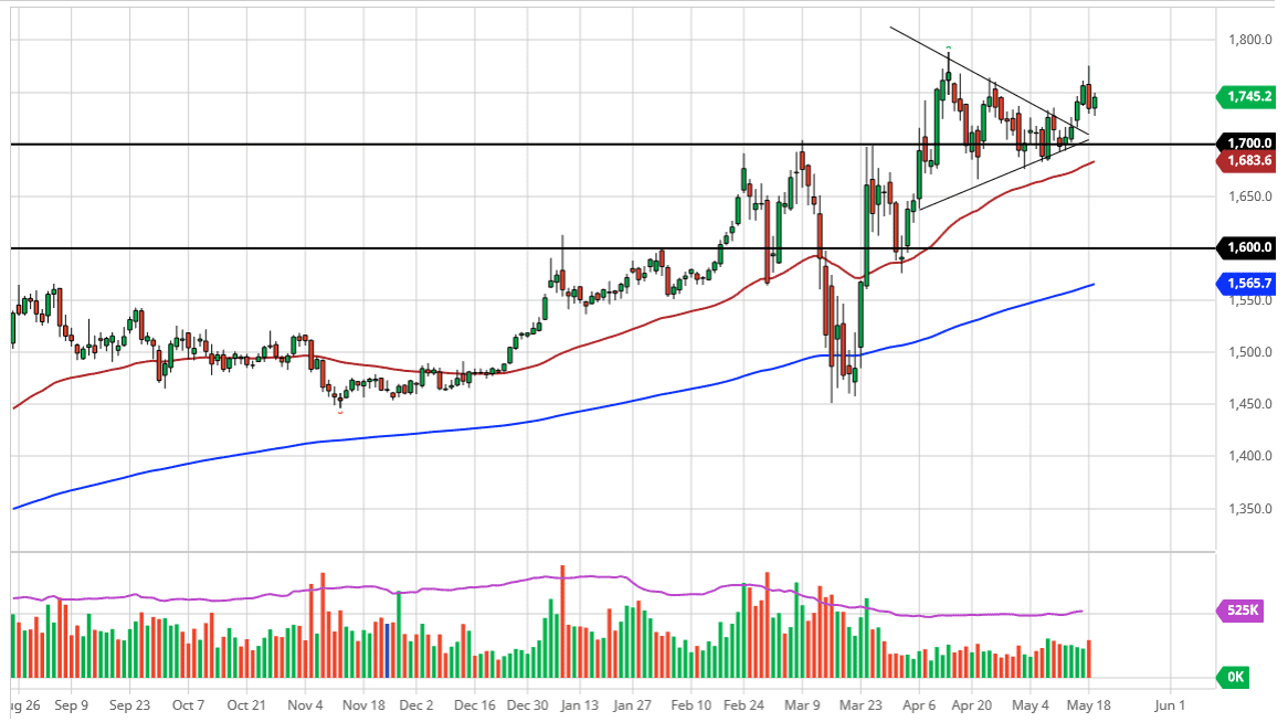 Furthermore, I think there is a significant amount of resistance that extends to the $19 level, so I am looking for an opportunity to short silver between here and there. However, I would also point out that if we do pull back, it is highly likely that there are plenty of supportive levels underneath to think about. The $17 level course will attract a certain amount of attention as it was a crucial level previously, and then of course the 200 day EMA after that, followed by the $16 level. In other words, there are plenty of reasons to think that the buyers will return given enough time.