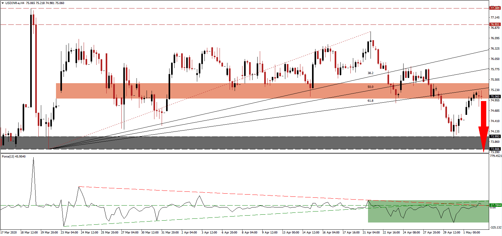 According to a snap poll conducted of 300 Indian CEOs, it will take the economy at least one year to return to normal after all lockdown measures are lifted. A growing number of countries realize that the initially communicated V-shape recovery is unrealistic. It allows them to identify areas of improvement and sectors where permanent change is unavoidable. The US is increasingly isolated from its approach that without implementing necessary change, the economy will bounce back more massively than before. After the USD/INR embarked on a healthy counter-trend reversal off of its support zone, ensuring the longevity of the long-term bearish chart pattern that remains intact, a renewed sell-off is expected.