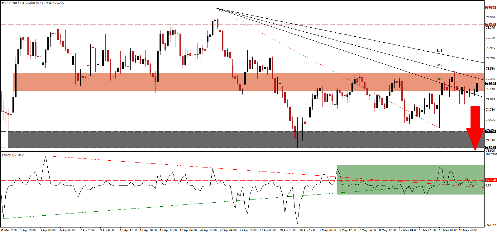 India, home to the world’s fifth-largest economy and Asia’s number three, attempts to use the Covid-19 crisis as an opportunity to charter a new course based on self-reliance. With GDP forecast to plunge by as much as 45% in the second-quarter, Prime Minister Modi is under pressure to deliver a sustainable plan forward, as the nationwide lockdown is gradually lifted. The ₹20 trillion spending package will produce immediate assistance but needs to be followed by structural reforms to yield the desired results. With uncertainty persistent, the USD/INR reversed its breakdown back into the enforced short-term resistance zone. Volatility is expected to increase, while the bearish bias remains dominant, partially driven by weak US data.