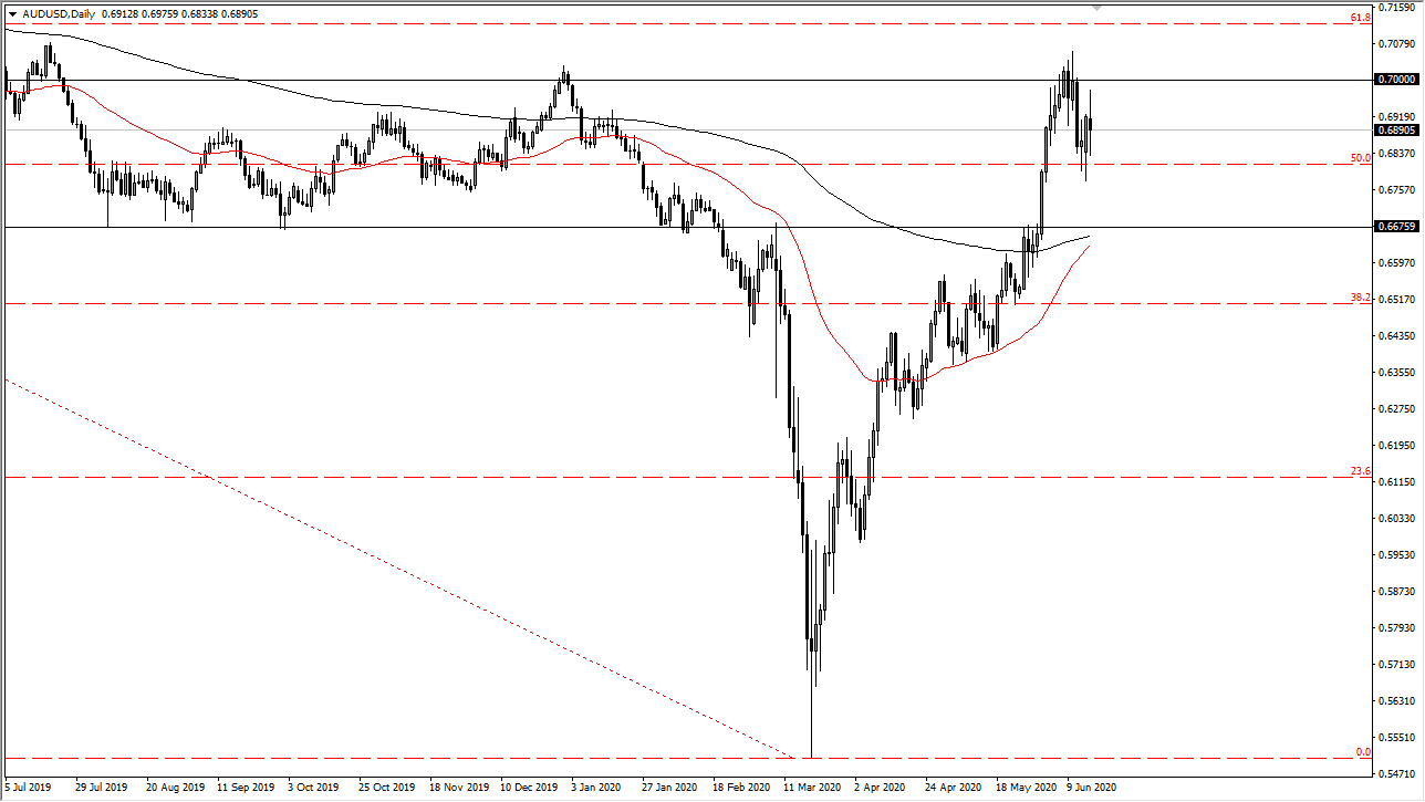 The Australian dollar has gone back and forth quite a bit during the trading session on Tuesday, as we initially tried to reach towards the 0.70 level but rolled over to show signs of exhaustion. The 0.70 level is a large, round, psychologically significant figure, and an area from which we broke down rather drastically in the recent trading. Beyond that, I think that the 0.70 level shows resistance all the way to the 0.71 handle. If we can break above that level, then it changes quite a few things.