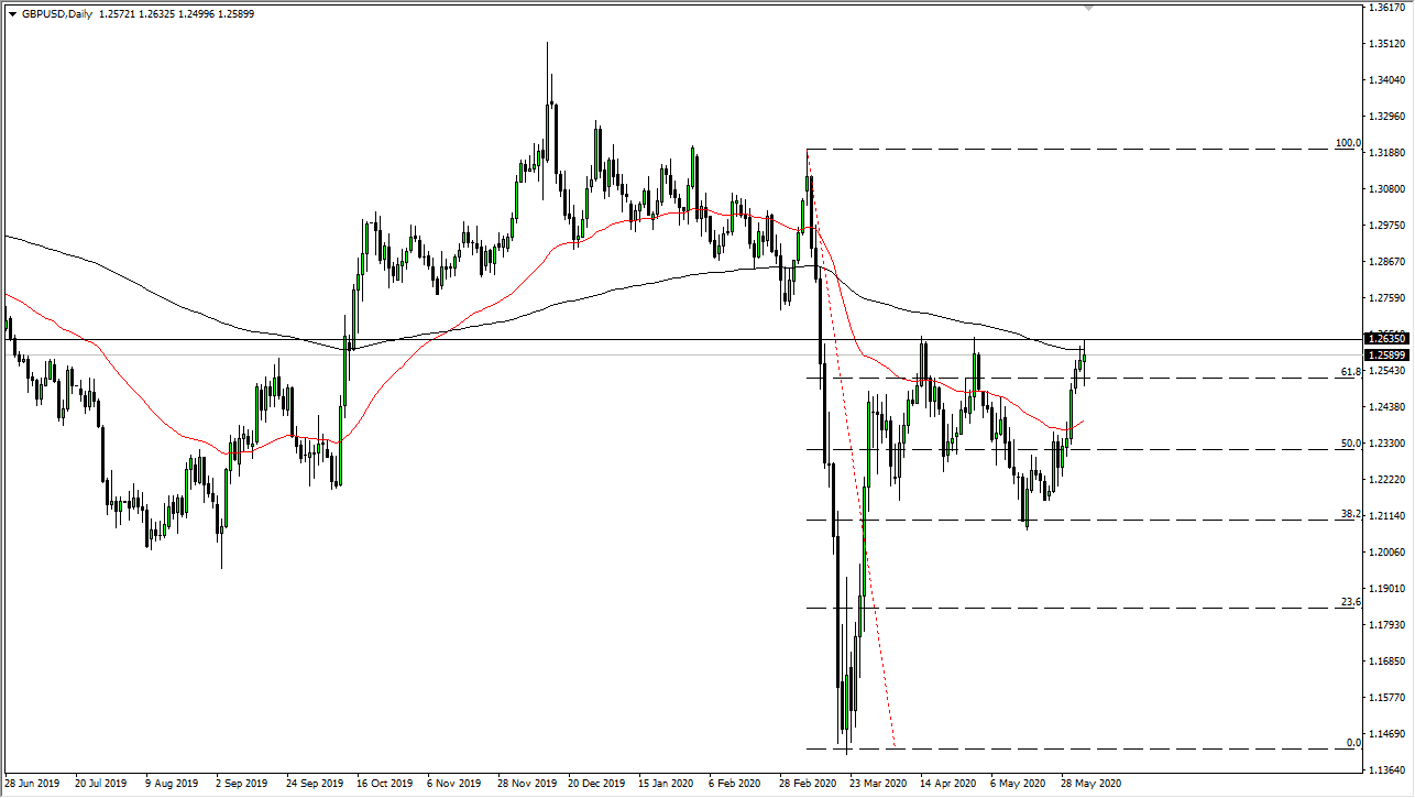 I can give you a million reasons as to why the British pound should not be going higher against the US dollar, but at the end of the day none of that matters. Yes, there are concerns when it comes to Brexit and of course the fact that the United Kingdom will remain somewhat lockdown even while it does open, and there is the idea that the Bank of England may go towards negative rates, but the British pound rallies anyway. The reason for that of course is probably more along the lines of the Federal Reserve trying to kill the US dollar, and so far, making a good go at it. With that being the case, I believe the volatility is going to get worse, not better, so do not be surprised at all to see this market for around in this area. If we break down below the bottom of the candlestick for Thursday, then it is likely we go down to the 1.2350 level. At this point, I would suggest that just about anything is possible from this point.