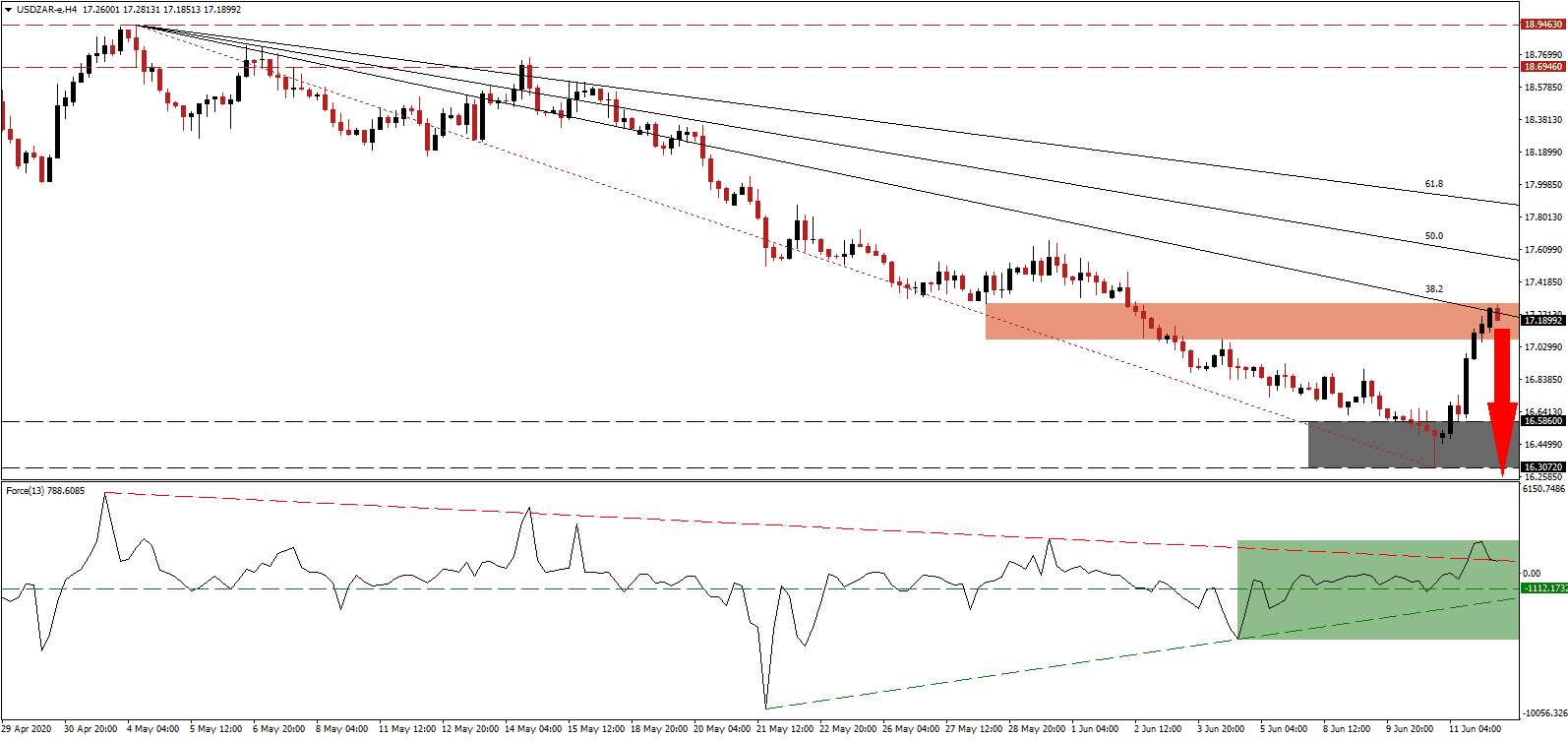 According to the Global Economic Prospects report for June 2020, distributed by the World Bank, the economy will face a 5.2% GDP contraction. South Africa is forecast to underperform with an estimated 7.1% drop in output. It represents a downward revision of 8.0% compared to the preceding assessment and constitutes the worst reading in over 100 years. The International Monetary Fund, in its April review, saw a 5.8% decrease in Africa’s most industrialized economy. The USD/ZAR completed a required counter-trend advance and has now reached its short-term resistance zone, favored to enforce the long-term correction in this currency pair.