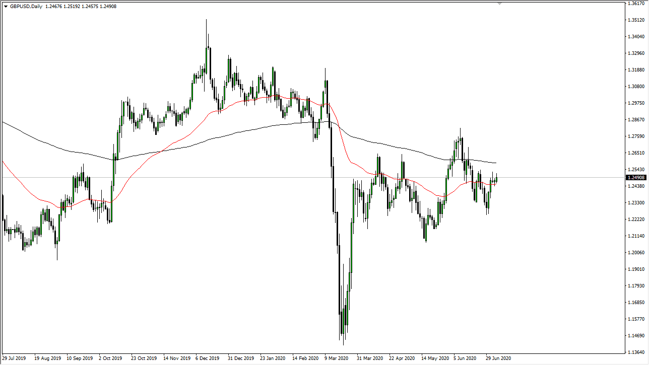 Further compounding the issue is the fact that the British pound has to deal with Brexit, and a lot of uncertainty when it comes to the British economy beyond that. Coronavirus numbers continue to rise in various parts around the world and it is likely that the markets will remain jittery due to that fact. If we were to turn around a break above the 200 day EMA, then the market could go looking towards 1.2750 level which is an area that has been important in the past and could bring in fresh selling. I think at this point the British pound is going to be difficult to trade and I do not see a catalyst going in either direction at this point. I think we simply will chop back and forth in trading that is going to be an exceptionally good opportunity to do serious damage to your account if you try to hang onto a trade for more than a few minutes.
