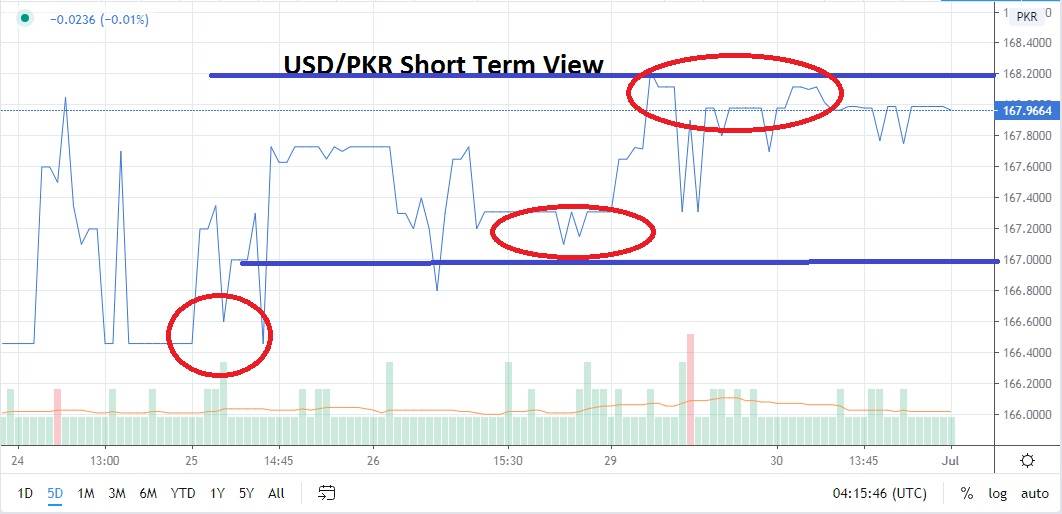 If a trader feels the need to sell the USD/PKR, they should do this with a strict limit order at an entry value which allows them to participate in the forex pair wisely. The USD/PRK is a speculative trade and the question that should be asked is regarding the upside and downside risks while considering timeframes.