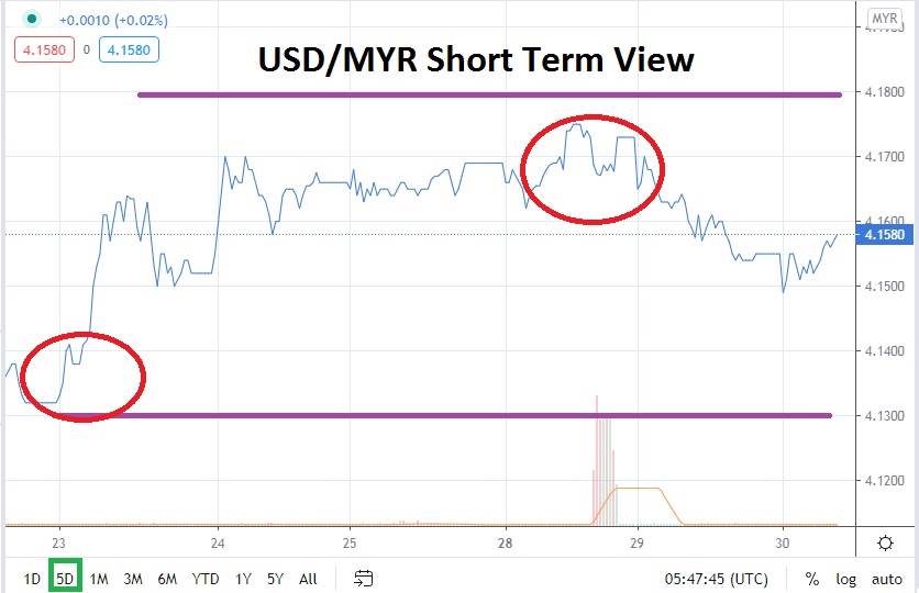 The USD/MYR is trading within the middle values of its five-day technical chart. The forex pair has experienced a bullish trend the past week and a half of trading since testing critical support levels near the 4.1050 ratio on the 21st of September. So while the bullish trend may look strong, it is all about perspective and the length of timeframes you are using within your technical approach.