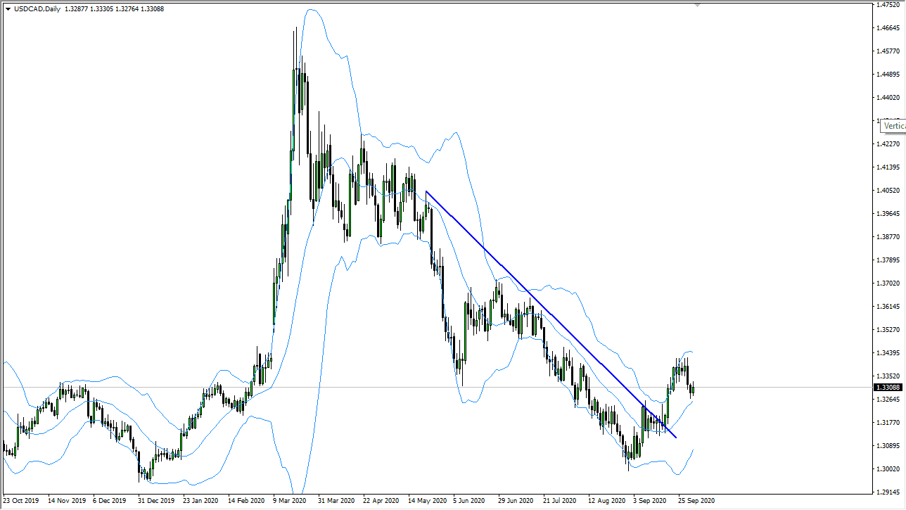 On this chart, I have the Bollinger Bands indicator. This is not an indicator used very often, but I brought it up on this chart to illustrate a point. The 20 SMA is offering support, and we have recently breached the top of the indicator, showing that we had been a bit overbought. Now we are in the “median” area of the indicator, and it suggests that there could be a little bit of buying. Furthermore, we are broken above a significant downtrend line and now it looks like we are trying to build upon that move.
