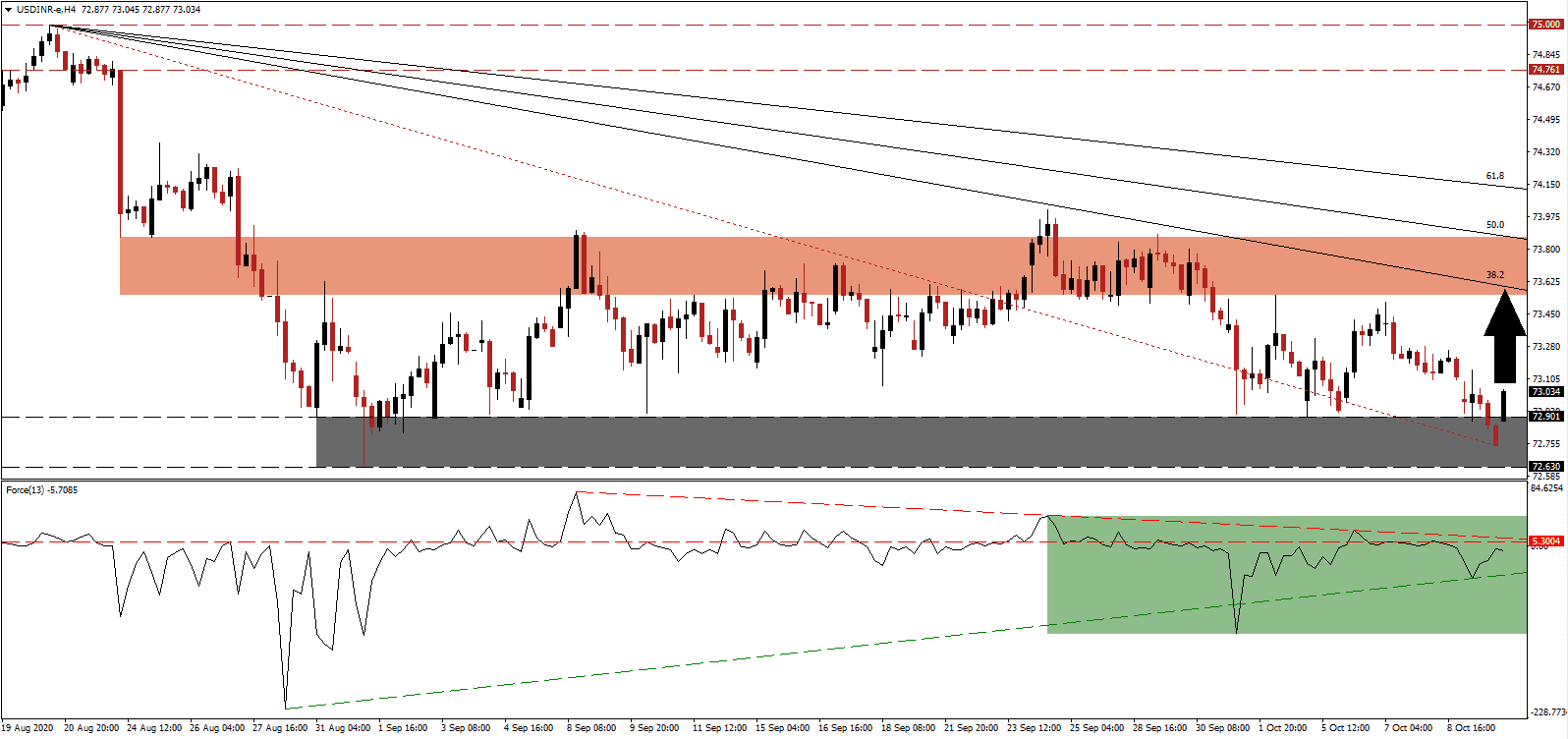 Agriculture and associated industries will lead the expected recovery in India, per an assessment delivered by RBI Governor Shaktikanta Das. Automobile and cement sales are at multi-year highs, which catapulted the September manufacturing PMI to its highest level since January 2012 at 56.8. It remains unclear how much of this activity is related to pent up demand after the two-month nationwide lockdown. After the USD/INR dipped into its support zone located between 72.630 and 72.901, as marked by the grey rectangle, a short-covering rally may add to more upside.