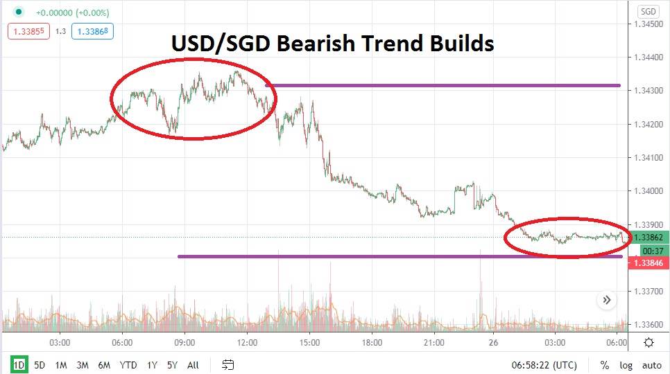 The past day of trading for the USD/SGD has not only reconfirmed the bearish trend of the Forex pair, but the momentum has now punctured long-term support ratios. The USD/SGD is now in territory it has not challenged since June 2018. The ability of the Singapore dollar to sustain its price below the 1.34000 should be watched carefully by speculators.