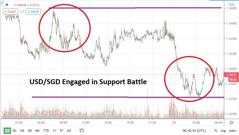 Speculators may want to continue pursuing selling positions of the USD/SGD with the notion that the Forex pair is entering a significant price band. The Forex pair has not traded its current values in a steady manner since June of 2018. Traders who look at long-term technical charts may appreciate what could await the USD/SGD if it continues to challenge support levels, which do look vulnerable.
