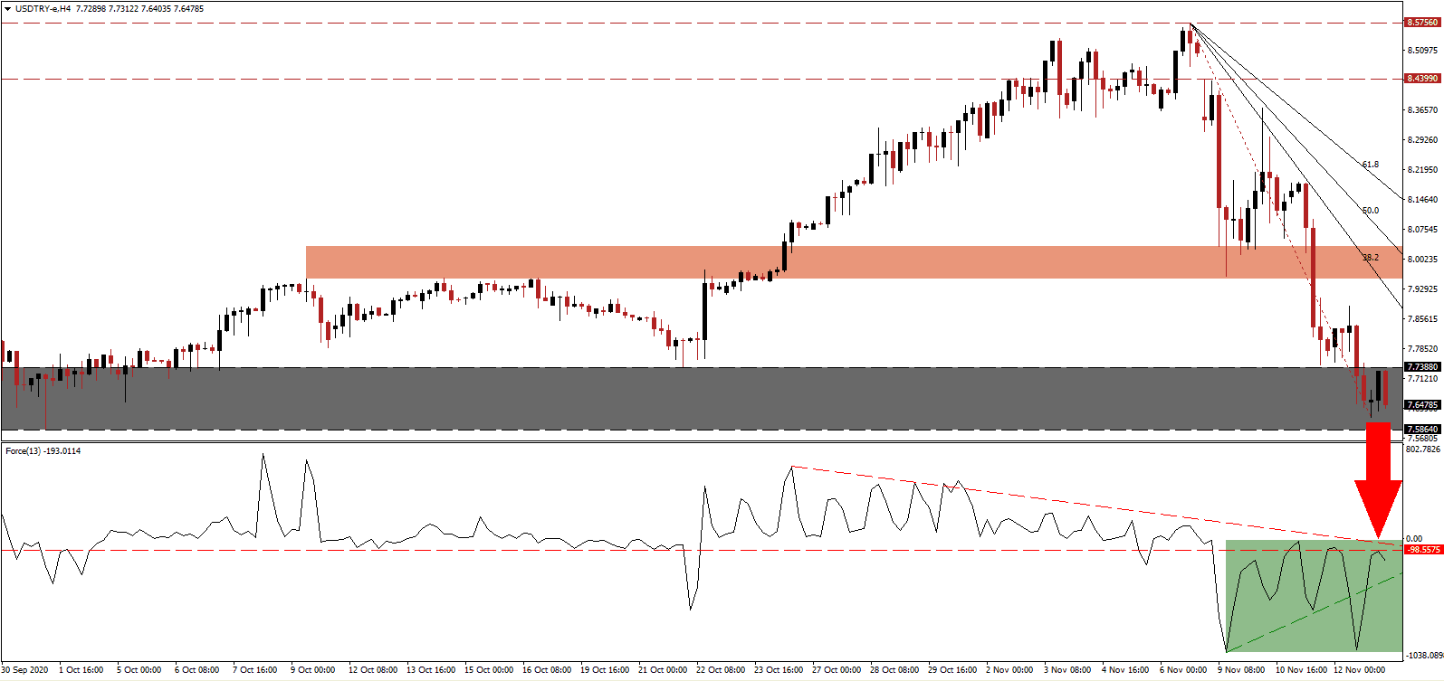 Compared to other countries, Turkey maintains relative control over the second wave of the Covid-19 pandemic. With less than 3,000 new confirmed cases daily, the domestic economy has room to extend its recovery. By comparison, Germany, with an identical population size, reports more than 23,000 infections per day. The figures are set to rise globally, but the USD/TRY is on course to extend its correction with a breakdown below its support zone, following a prolonged period of weakness.