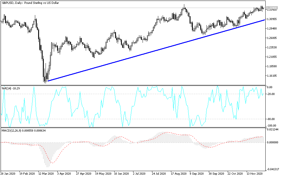 The GBP/USD is subject to more volatility in the Forex market during these crucial days, with Brexit talks approaching their end and informal briefings leading to moves in either direction. Therefore, it is likely that a more substantial move will come only when a formal conclusion is reached. So far, the bulls still have the strongest control and stability above the 1.3400 resistance, confirming and warning of the possibility of moving towards stronger ascending levels, the closest of which are currently at 1.3465, 1.3520 and 1.3600, respectively. On the downside, according to the performance on the daily chart, breaking the 1.3210 support is the most important for bears to re-control performance.